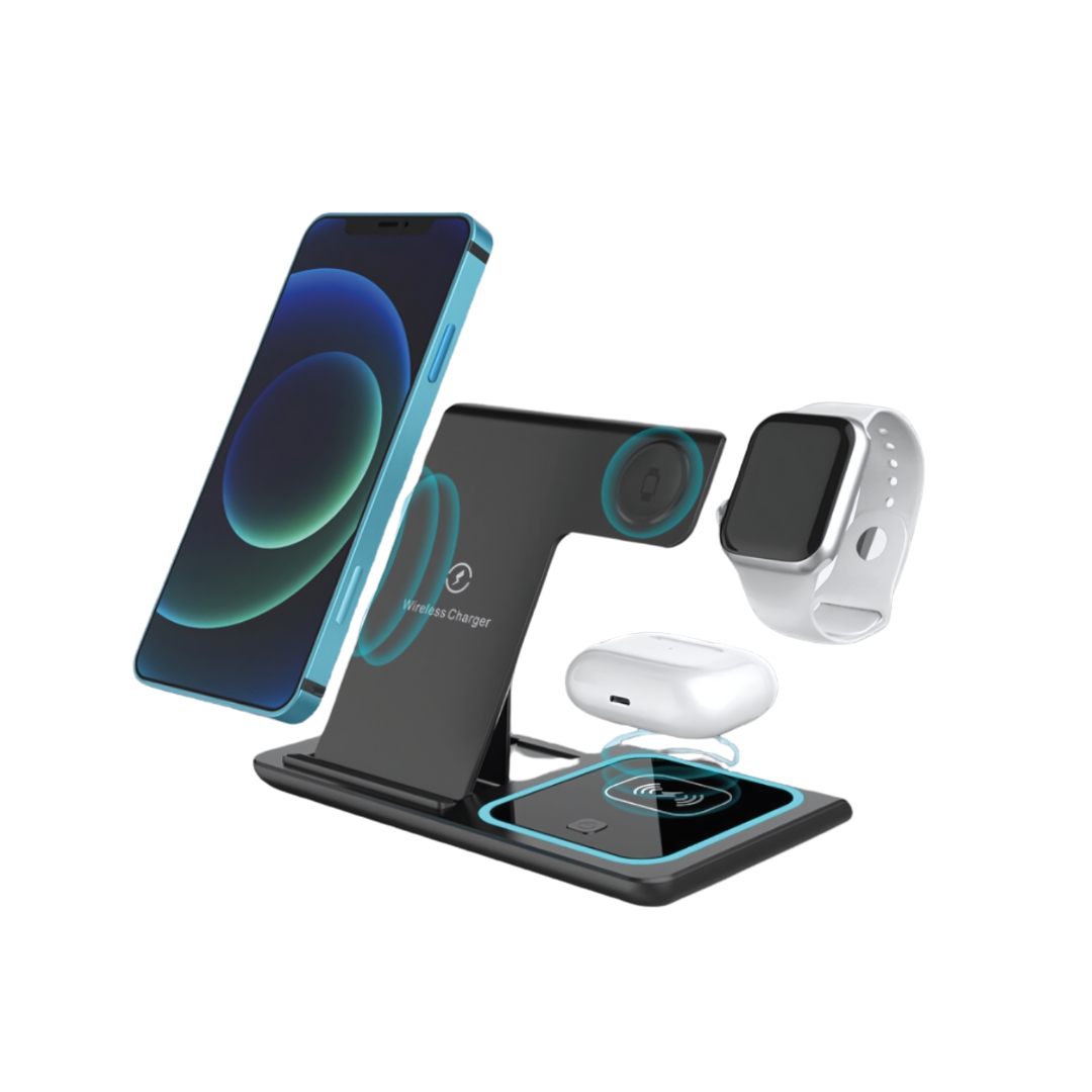 BASE CARREGADOR SEM FIO 3 EM 15W - X-CELL Use seu dispositivo a qualquer hora, em qualquer lugar, garantindo um carregamento eficiente e seguro com o carregador da X-CELL Base Wireless 15W 3 em 1. Carregador Indução 3 Em 1 Para iPhone 8 Em Diante Wireless Compatível com modelos iPhone, Samsung e Xiaomi que possuam o recurso de carregamento por indução. Organização e praticidade para o seu dia a dia, seja no escritório, em casa ou em qualquer lugar. Carregue seu iPhone + Airpods + Apple Watch em um único lugar sem fios esparramados! A Dock Station da X-CELL é uma estação de carregamento wireless rápida, segura e eficiente, oferecendo um carregamento conveniente e confiável para todos os seus dispositivos. Fabricada com materiais de alta qualidade, garantindo durabilidade e segurança. A carcaça externa é feita de material resistente, protegendo o dispositivo enquanto está sendo carregado. Componentes eletrônicos internos fabricados com qualidade premium garantem um carregamento estável e seguro. Compatível com uma ampla variedade de dispositivos, incluindo smartphones, smartwatches e airpods. Capacidade de carregamento rápido de até 15W para smartphones, 2W para smartwatches e 3W para airpods, garantindo que seus dispositivos sejam carregados rapidamente. Projetada para ser elegante e moderna, combinando perfeitamente com qualquer ambiente. Com design discreto e construção resistente, mantém sua área de trabalho organizada e limpa.