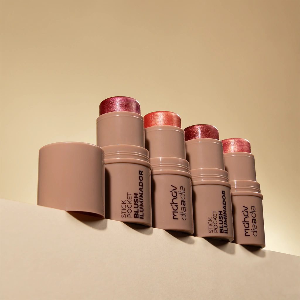 O Blush Iluminador Stick Pocket Dia a Dia Mahav é um produto em formato bastão compacto, desenvolvido para oferecer praticidade, intensidade de cor e iluminação. Fórmula cremosa, com textura suave e aveludada, que proporciona fácil aplicação diretamente sobre a pele. O acabamento é corado e iluminado, permitindo a construção de camadas para alcançar a intensidade desejada. Pode ser esfumado com pincel ou com os dedos, garantindo versatilidade na aplicação. Além disso, é um item multifuncional, podendo ser utilizado também como batom ou sombra.