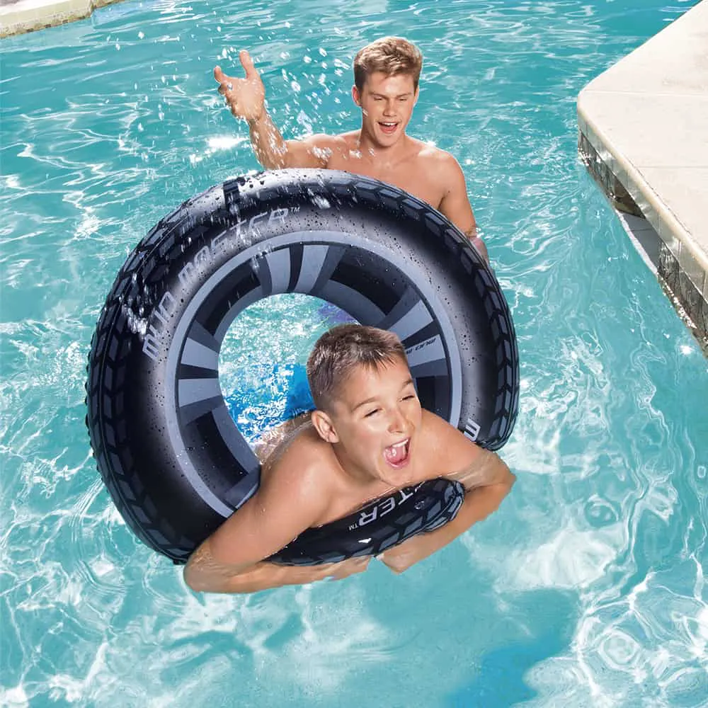 Inspirada nos robustos pneus de lama ("Mud Master"), esta boia de 91 cm de diâmetro é perfeita para quem busca diversão, relaxamento e um visual descolado na piscina, praia ou lago.