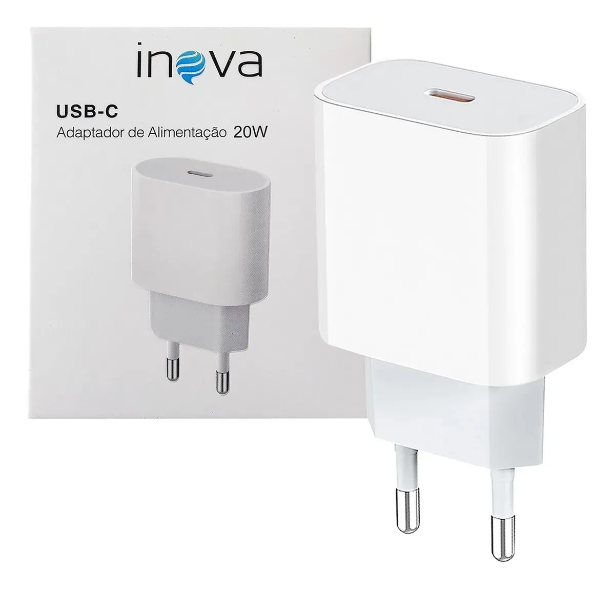 Carregador Turbo Inova 20W CAR-0094 – Tecnologia Power Delivery (USB-C), Carregamento Rápido e Versatilidade Total para iPhone e Android!