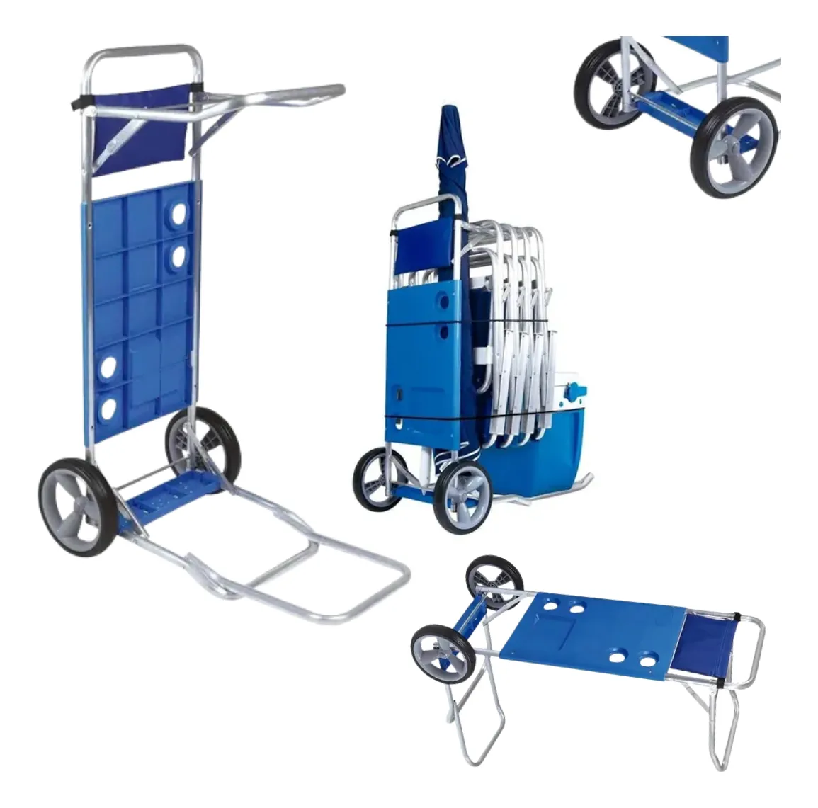 Carrinho: Transporte fácil de cadeiras, guarda-sol e outros itens de até 20 Kg.