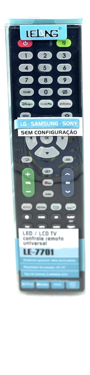O modelo Lelong LE-7701 é um controle remoto universal desenvolvido para operar uma vasta gama de Televisores LCD e LED.