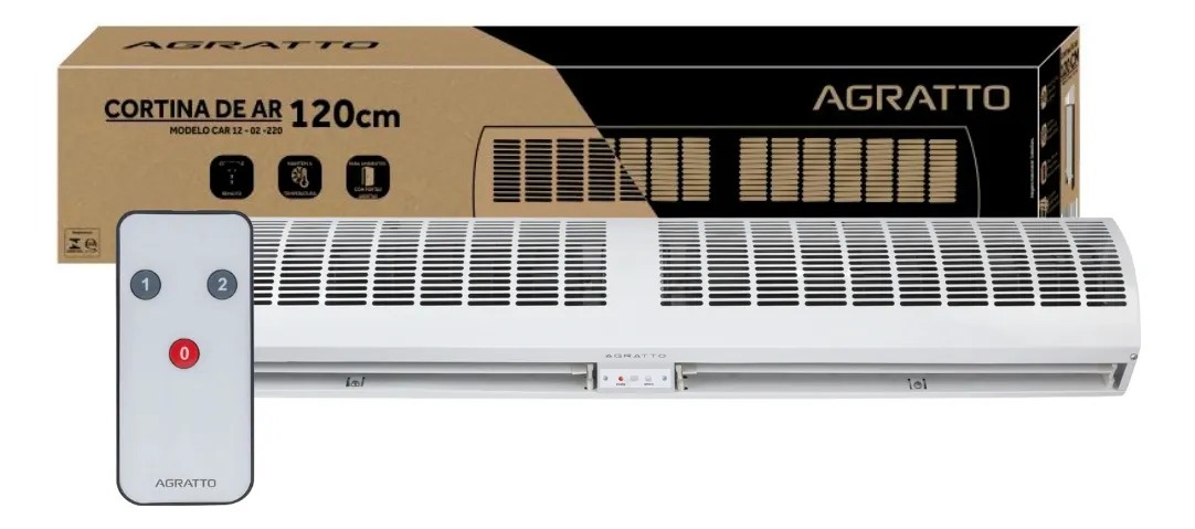 A Cortina de Ar Agratto de 120cm é a solução definitiva para estabelecimentos comerciais e residências que buscam manter a climatização interna sem abrir mão da porta aberta. Projetada para criar uma barreira invisível de ar, ela isola a temperatura ambiente e protege o seu espaço contra a entrada de poeira, insetos, fumaça e odores desagradáveis vindo da rua.