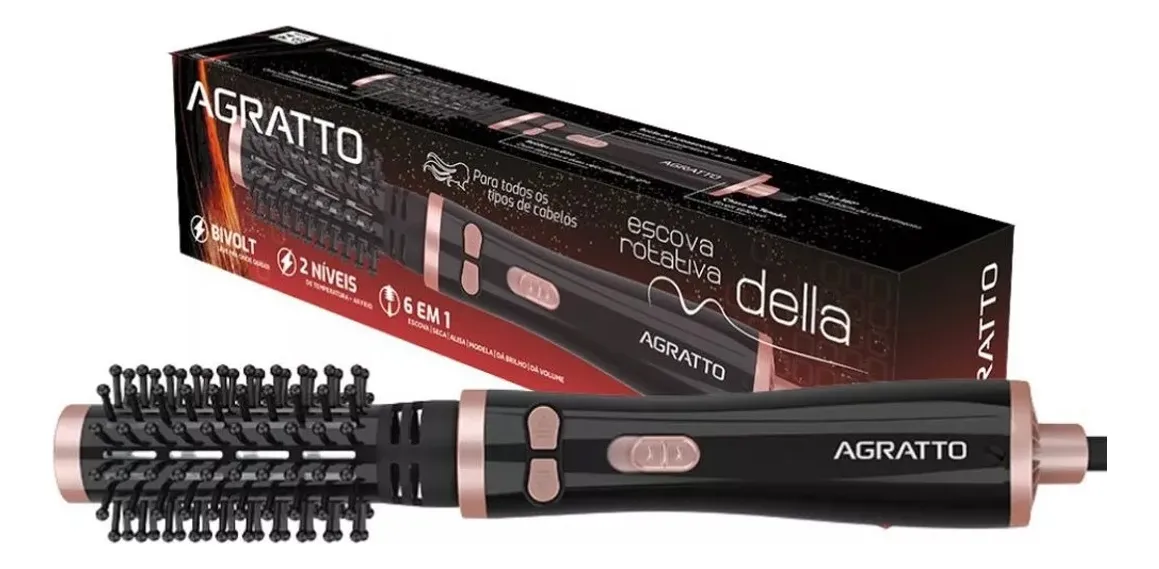 Revolucione Seu Penteado com a Escova Secadora Rotativa Della 6 Em 1 Agratto!