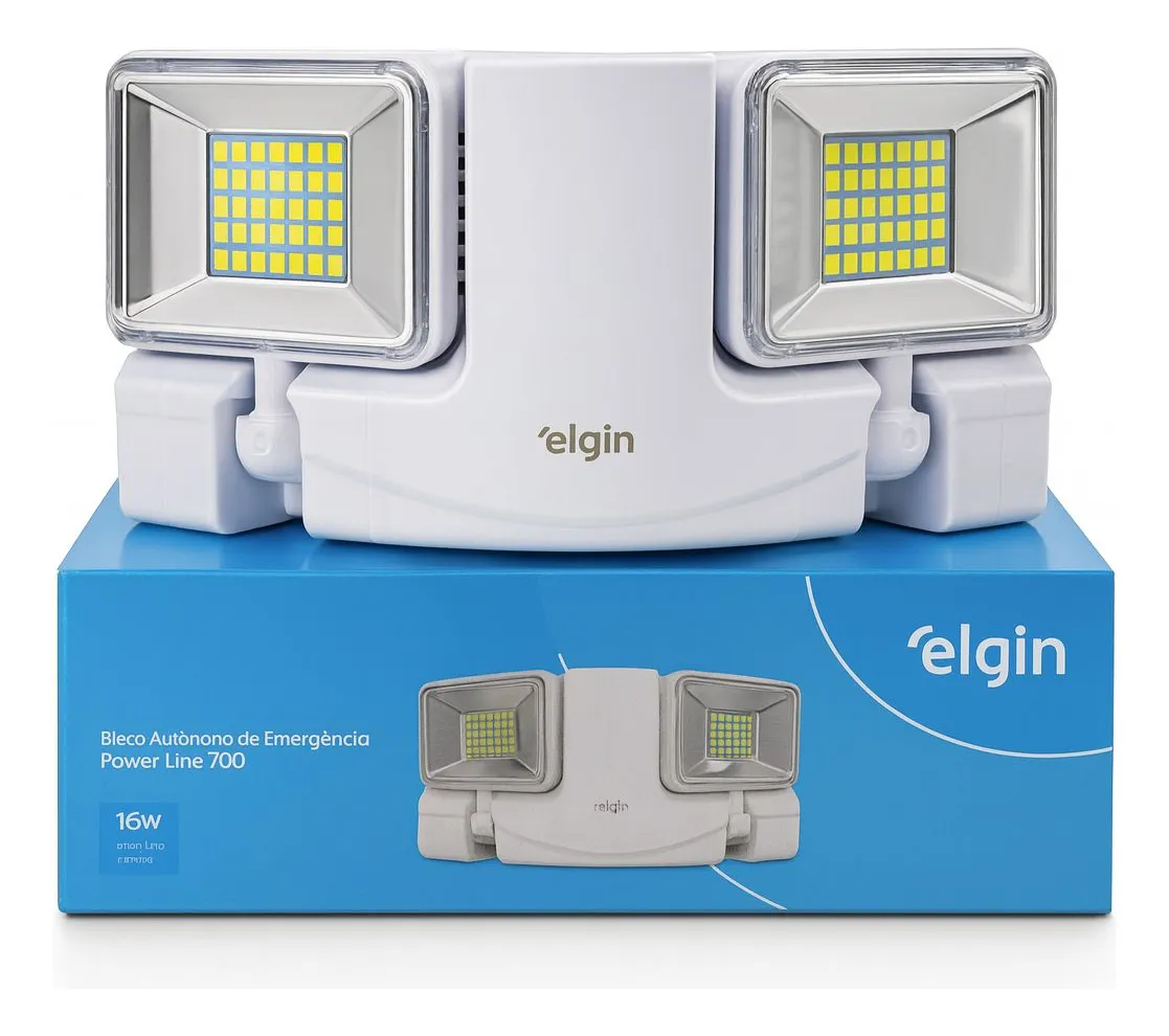 Luz de Emergência LED Elgin Power Line 700 Lúmens - Bivolt com 2 Faróis Articulados