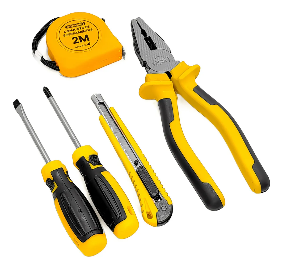 Kit de Ferramentas Bomvink BOM-3131 – 5 Peças Essenciais: O Combo Perfeito para Reparos Rápidos e Projetos em Casa!
