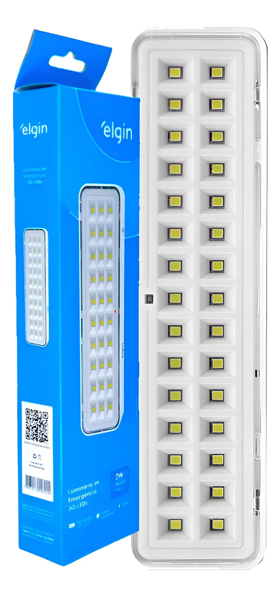 Luz de Emergência LED Elgin 30 LEDs - Bateria de Lítio e Autonomia de até 6 Horas