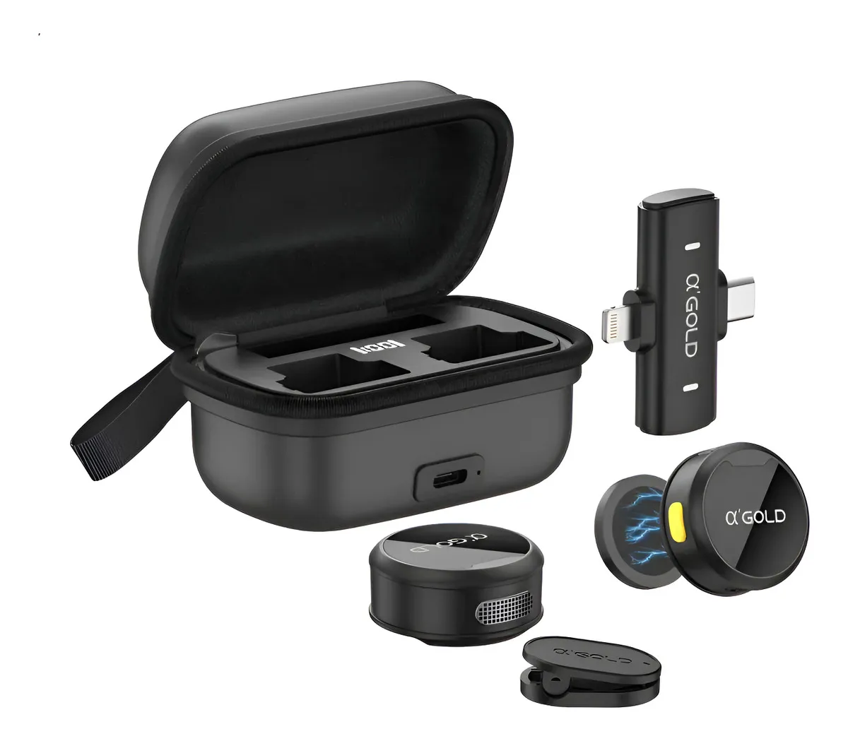 Kit 2 Microfones de Lapela Sem Fio A'Gold MCF-38 – Redução de Ruído com IA e Conexão Universal
