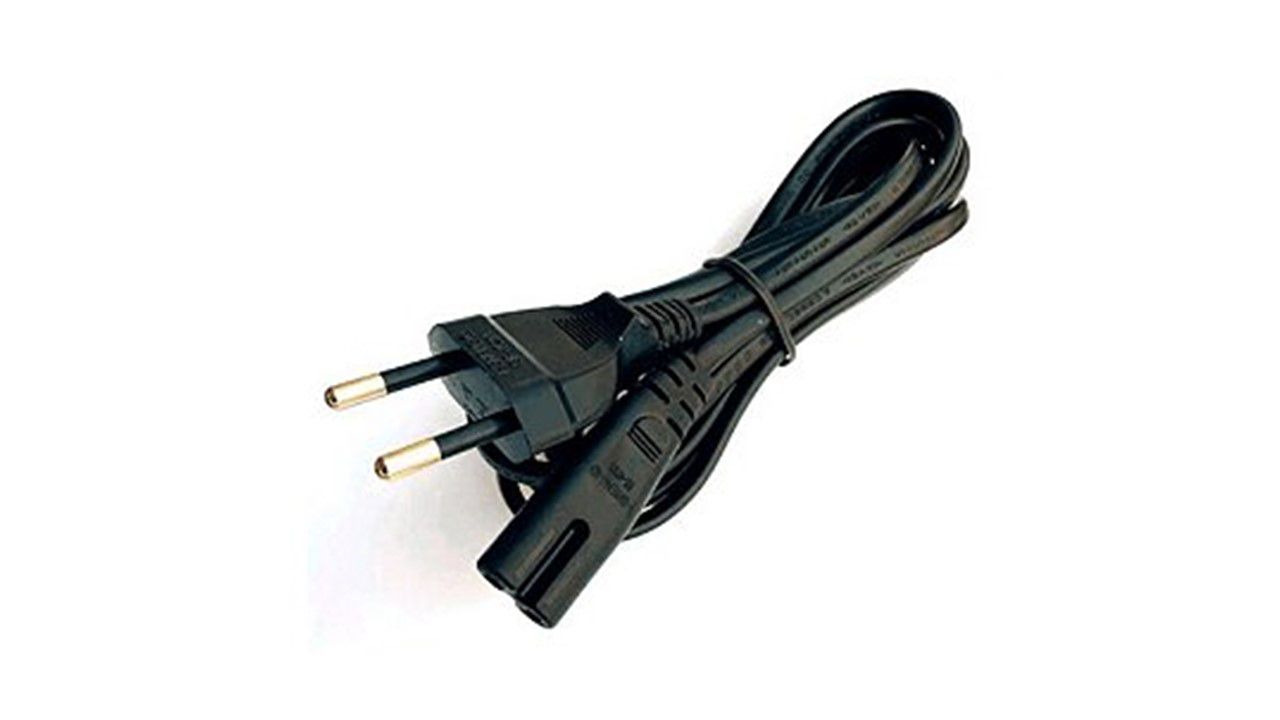 O cabo de força de 1,5 metros segue o novo padrão de tomadas brasileiras, com plugue de 2 pinos. Possui proteção de plástico nos pinos para evitar choques acidentais por contato.