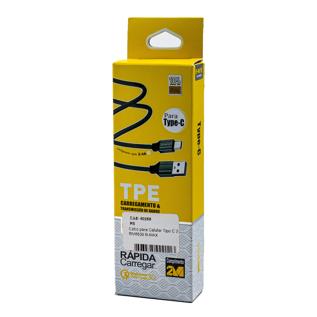 O Cabo B-MAX BM8630 é a solução ideal para quem precisa de alcance e eficiência no dia a dia. Com 2 metros de comprimento, ele elimina aquela limitação de ter que ficar colado à tomada, permitindo que você use seu dispositivo com total conforto, seja no sofá, no escritório ou no carro.