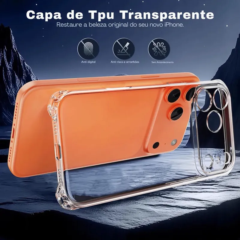 Capa Anti Impacto Premium para iPhone 17 Pro – Transparência Cristalina, Proteção de Grau Militar e Tecnologia Anti-Amarelamento!