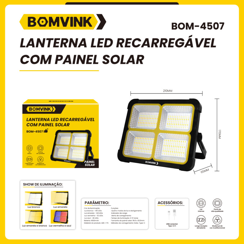 1-Lanterna Solar Led Prova Dágua Recarregável 500w