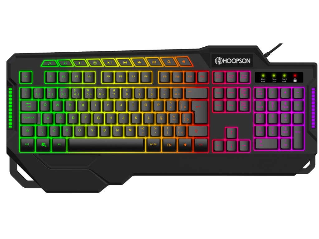 Teclado Hoopson Gamer Semi-Mecânico, teclas com keycap suspenso com eixos mecânicos garantindo execução de comandos de forma rápida e precisa,
