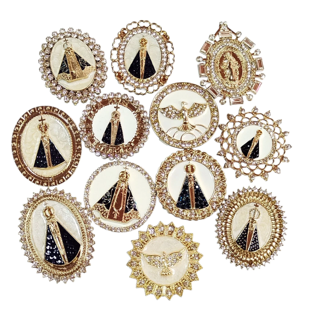 Suporte Para Celular Pop Socket Religioso Nossa Senhora Aparecida Com Detalhes Em Strass
